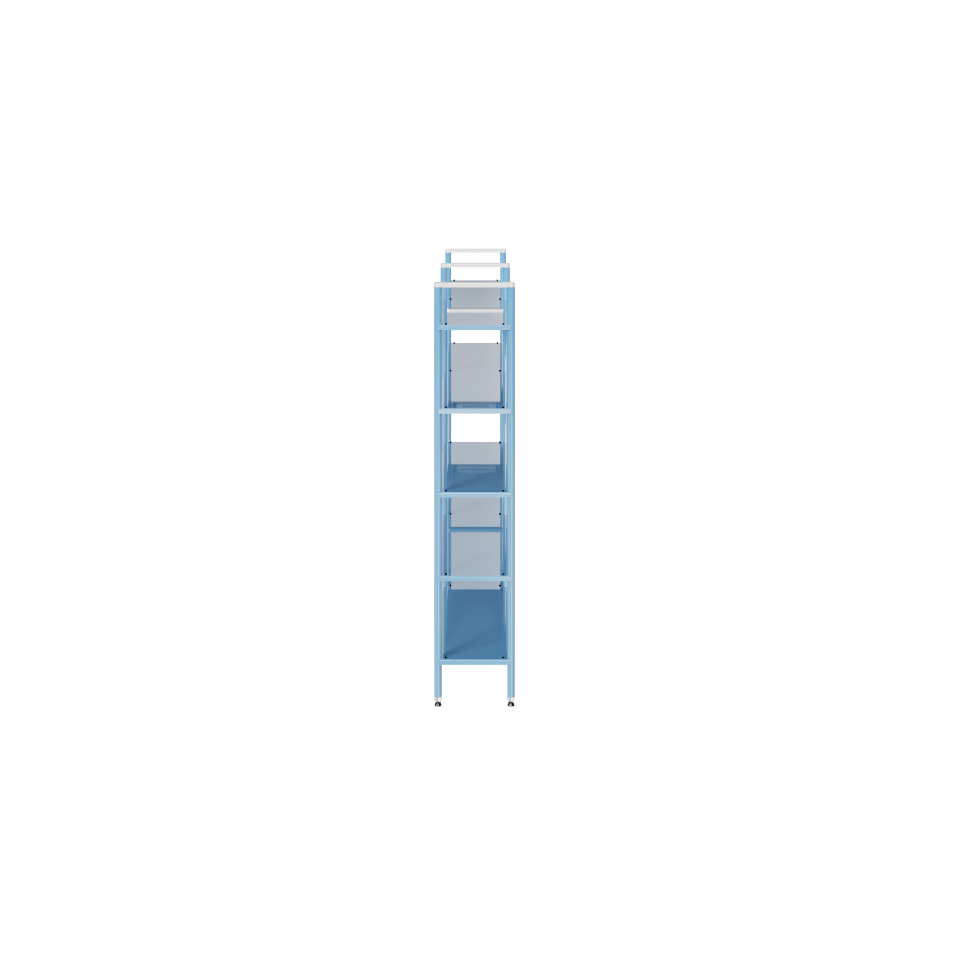 aluminium shelf unit in a unc blue glossy powder coated finish
